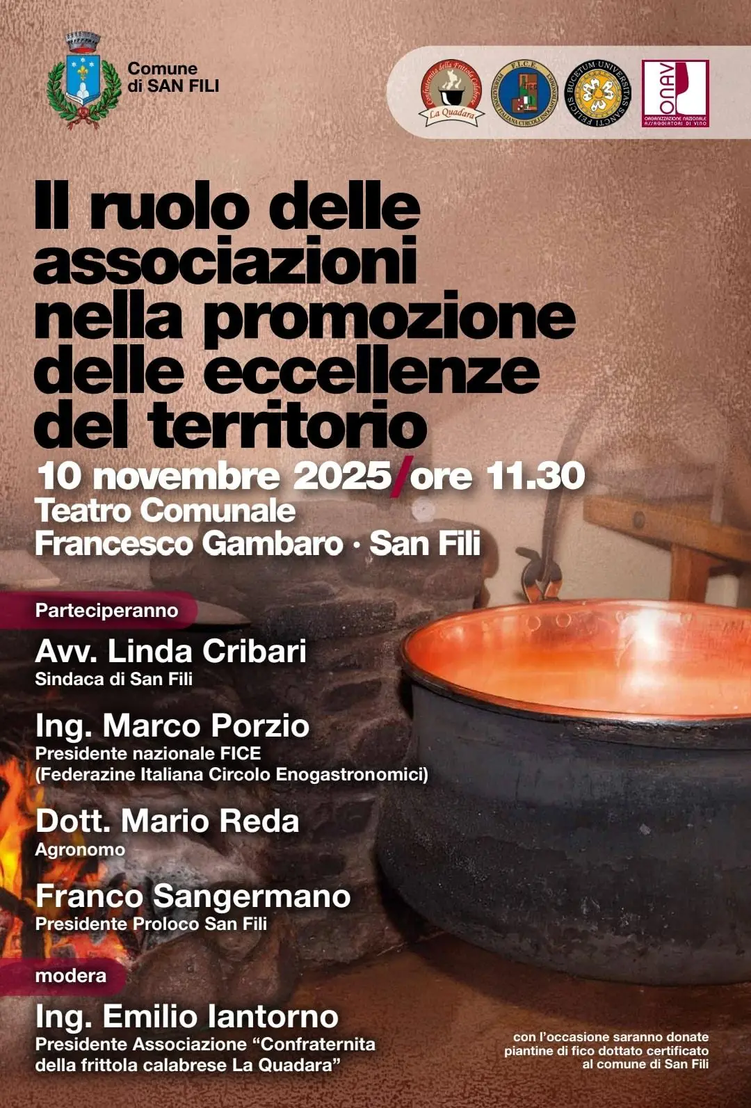 Un momento di confronto e riflessione dedicato al valore delle associazioni culturali, enogastronomiche e di promozione sociale, protagoniste nella valorizzazione delle risorse locali, nella tutela delle tradizioni e nella costruzione di nuove opportunitร per il territorio. In occasione dellโincontro, verranno donate al Comune di San Fili alcune ๐ฉ๐ข๐๐ง๐ญ๐ข๐ง๐ ๐๐ข ๐๐ข๐๐จ ๐๐จ๐ญ๐ญ๐๐ญ๐จ ๐๐๐ซ๐ญ๐ข๐๐ข๐๐๐ญ๐จ, simbolo di crescita, radici e appartenenza. Un evento che pone al centro la collaborazione, la conoscenza e la valorizzazione delle eccellenze calabresi, per continuare a costruire insieme un futuro fondato sullโidentitร , sulla qualitร e sulla comunitร .