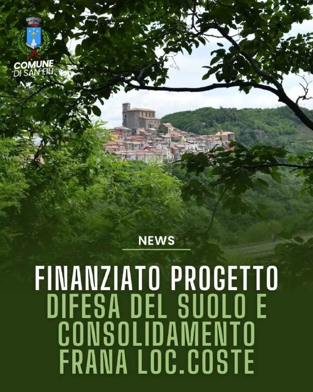 San Fili ottiene un nuovo finanziamento per la difesa del suolo in localitร Coste!ร stato infatti ammesso a finanziamento lโintervento di โDifesa del suolo e consolidamento frana in localitร Coste โ Lotto IIโ, nellโambito della ripartizione della quota dellโOtto per Mille IRPEF a diretta gestione st