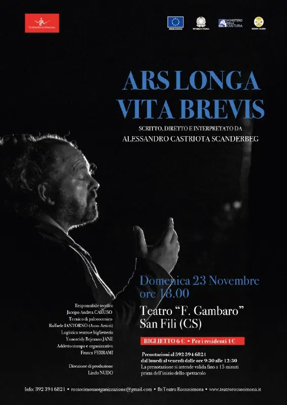 ๐๐๐ ๐๐๐๐ | ๐๐ซ๐ฌ ๐๐จ๐ง๐ ๐ ๐๐ข๐ญ๐ ๐๐ซ๐๐ฏ๐ข๐ฌIl nuovo appuntamento della rassegna โ๐๐ฎ๐ญ๐ญ๐ข ๐ ๐๐๐๐ญ๐ซ๐จ โ ๐๐ข๐๐ ๐ ๐ข๐จ ๐ง๐๐ข ๐ ๐๐ง๐๐ซ๐ข ๐ญ๐๐๐ญ๐ซ๐๐ฅ๐ขโ, promossa dal Comune di San Fili con la direzione artistica di ๐๐ข๐ง๐๐จ ๐๐ฎ๐๐จ, porta in scena lo spettacolo โ๐๐ซ๐ฌ ๐๐จ๐ง๐ ๐ ๐๐ข๐ญ๐ ๐๐ซ๐๐ฏ๐ข๐ฌโ, scritto, diretto e interpretato da Alessandro Castriota